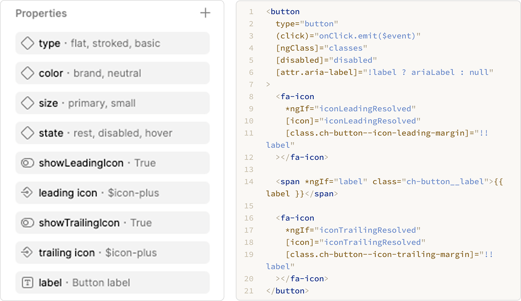 As the system matured, ownership of the Angular library moved to our front‑end developer and the design system working group. We keep Figma and Angular in lockstep—every component has the same tokens, states, and properties across both libraries.