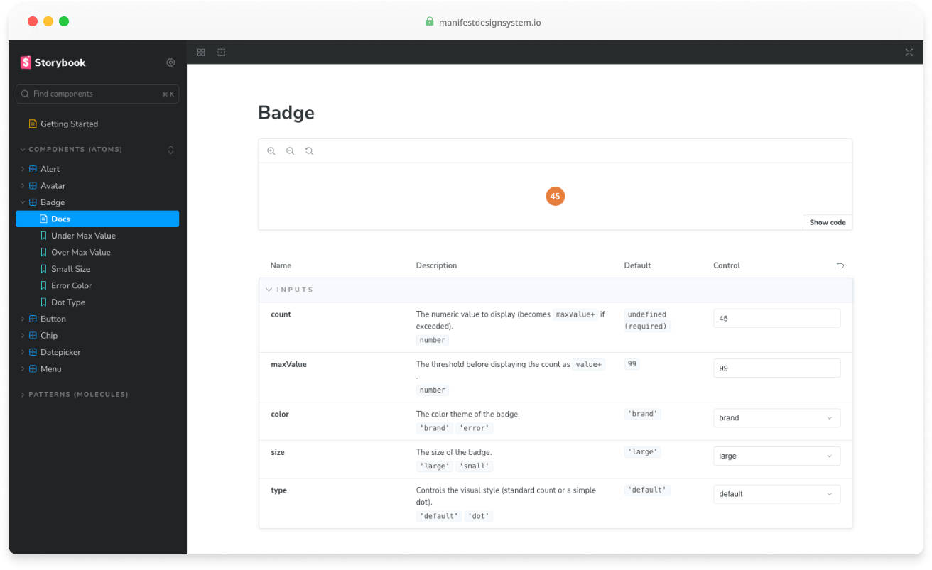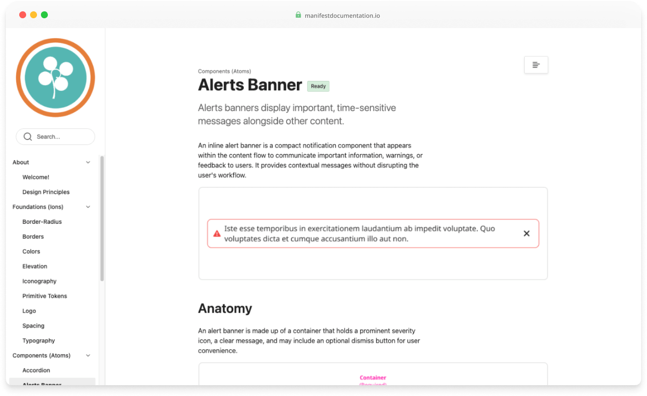 We used Zeroheight as the hub for documenting the Manifest Design System. This included foundational details like colors, spacing, and typography, as well as complete documentation for each component.