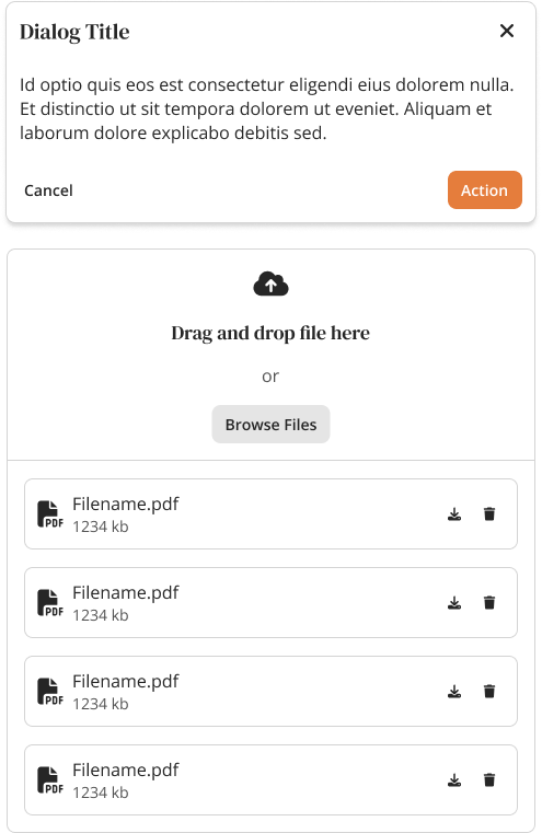 Building on our atom-level foundations, we combined buttons, inputs, labels, and icons into larger components with more defined purpose. These molecules and organisms included common patterns like dialogs, tables, filters, pagination, and file uploaders.